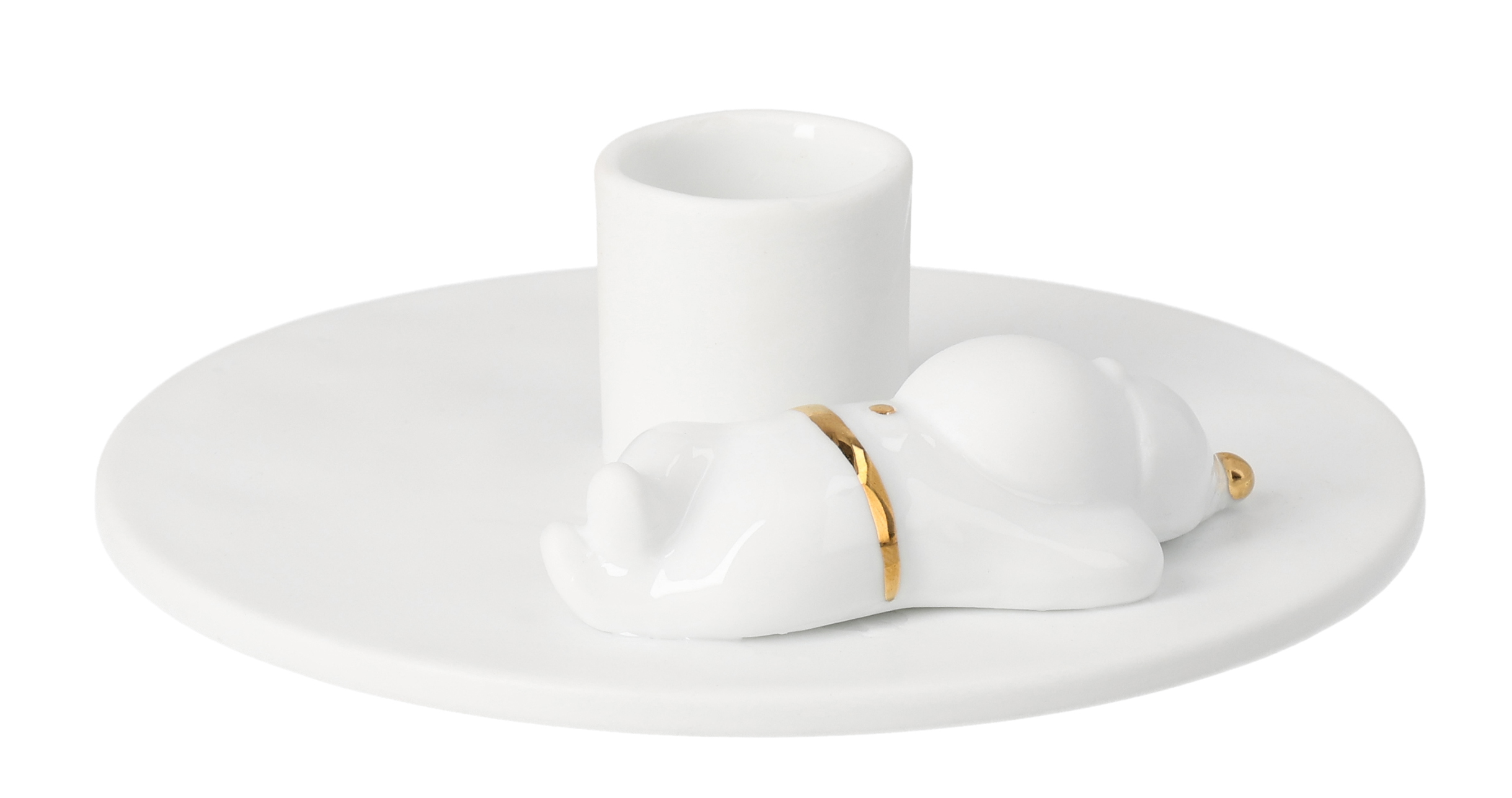 Material: Porzellan. Teilweise glasiert und mit goldenem Decal. Geeignet für Stabkerzen (Kerzen nicht im Lieferumfang enthalten)