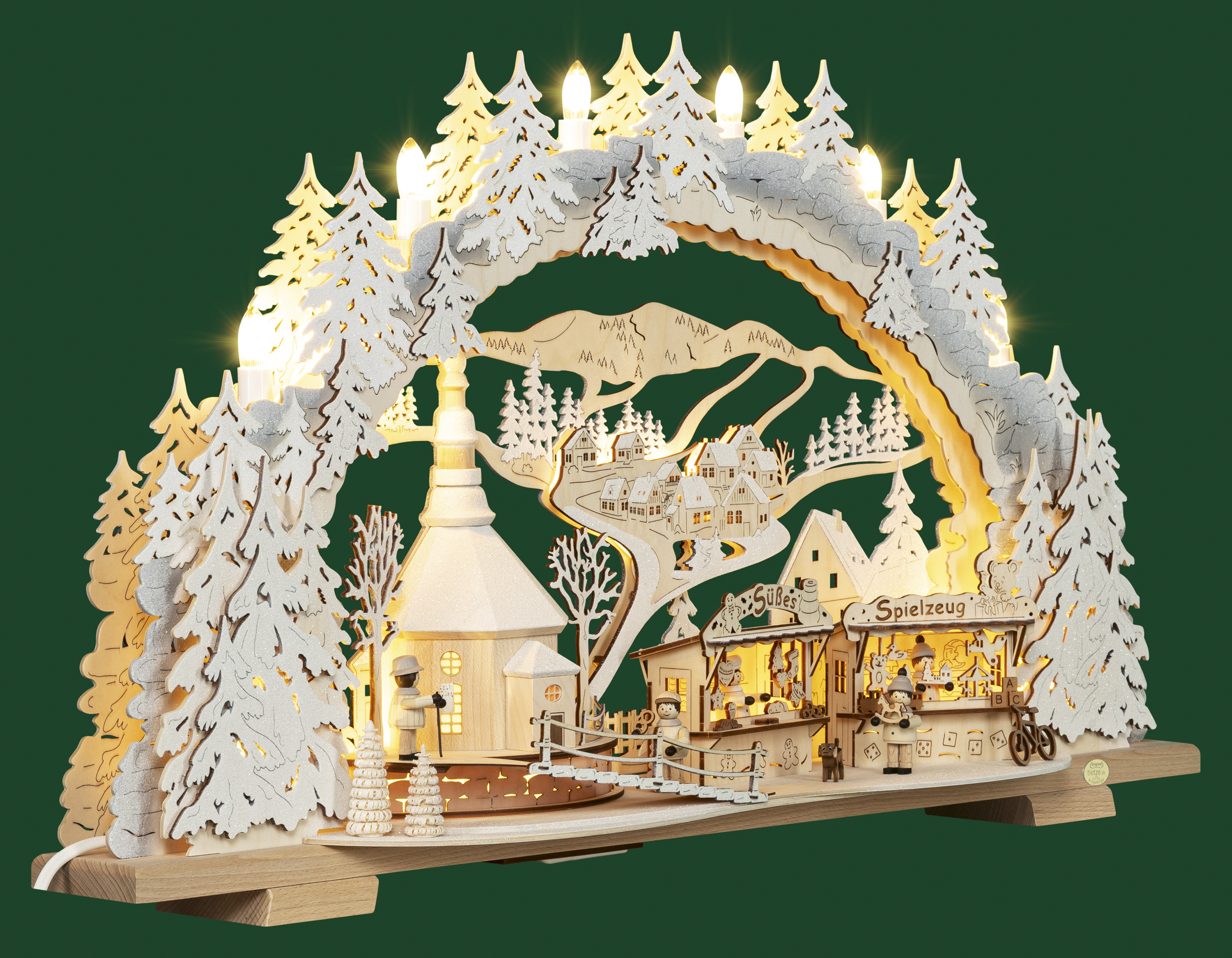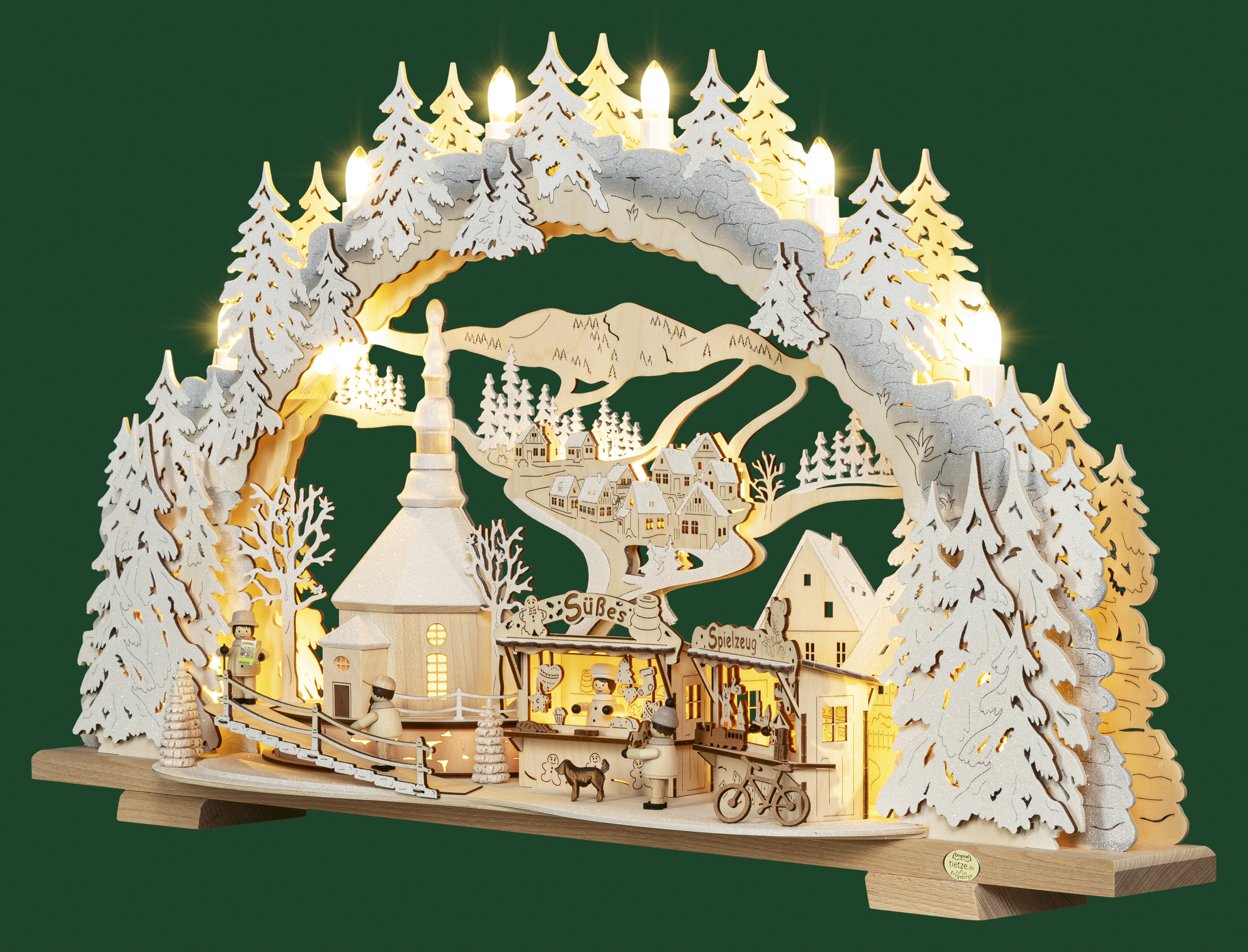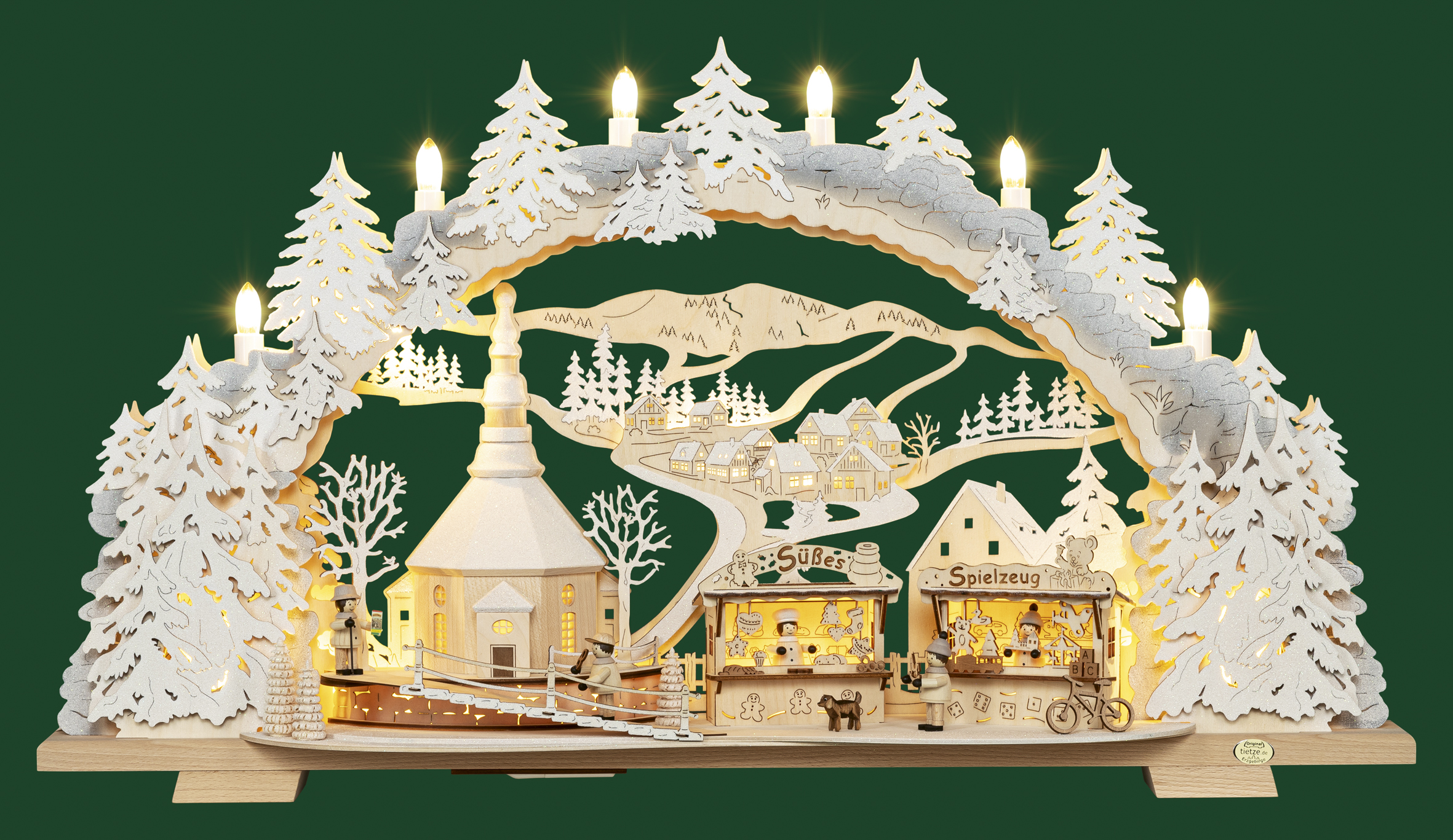 "Tietze Schwibbogen-LED Kirmes in Seiffen variabel, Schnee, 70 cm TILB3925S"