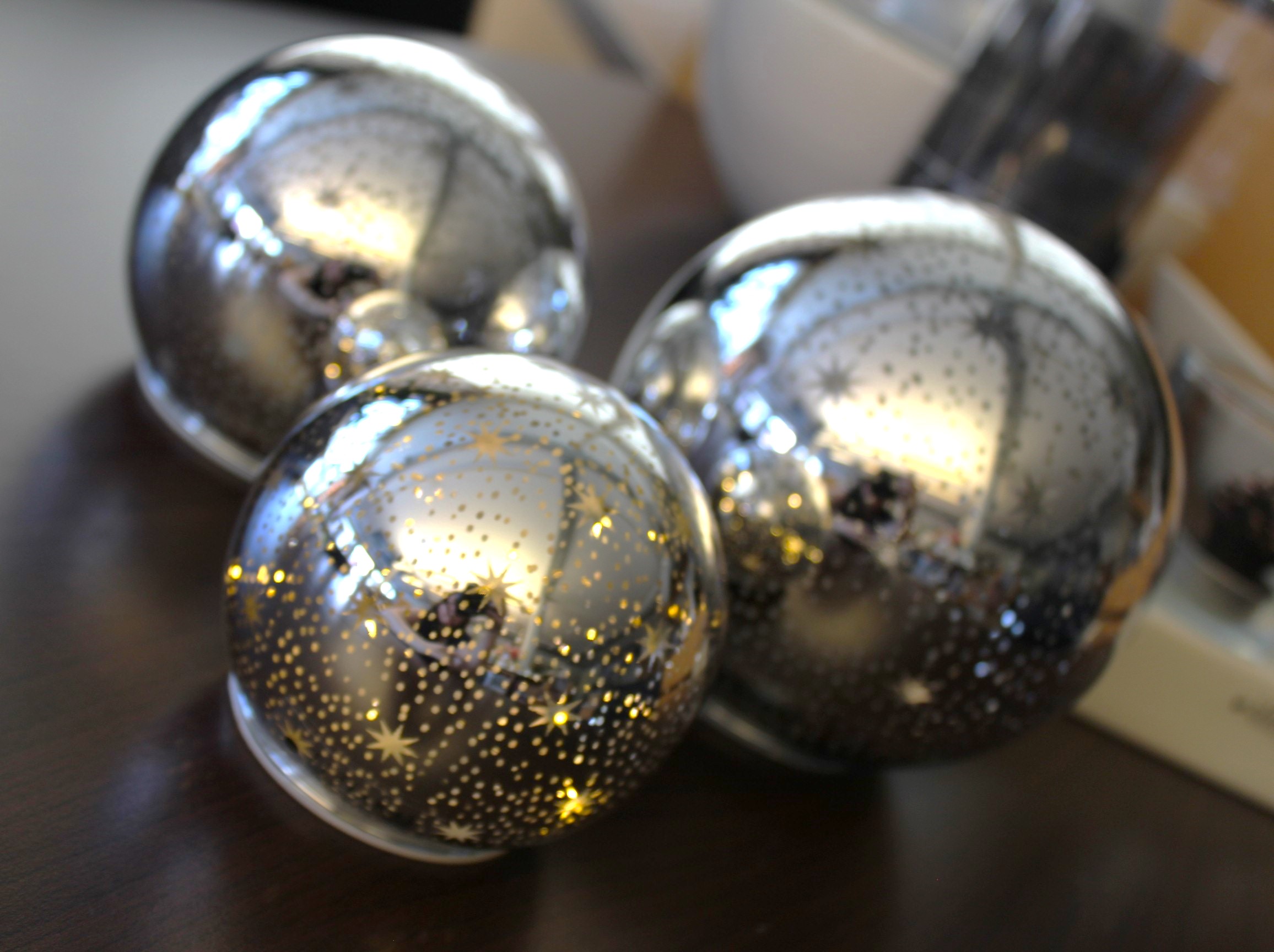 Glaskugel Lumina LED & Timer Stern silber für 3 x AA Batterien.