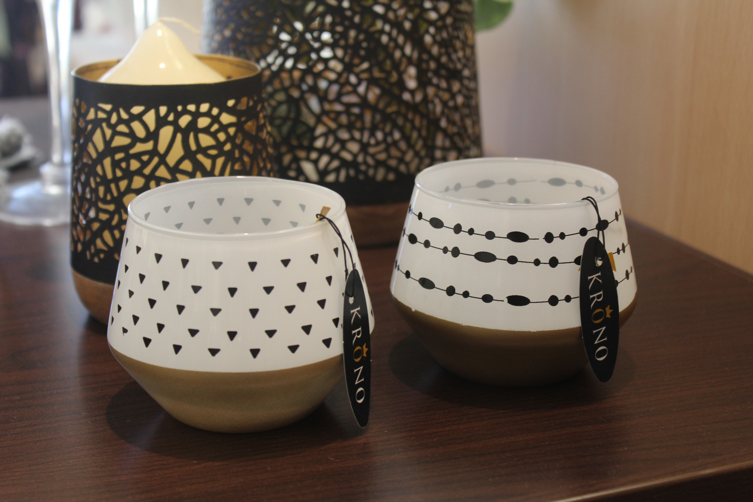 Teelicht Albany Streifen/Dreiecke creme/braun
